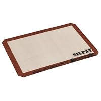 Silpat Nonstick Silicone Baking Mat Baking has never been so easy. This baking mat works wonderfully as baking pan liner or as a working surface because of its silicon and fiberglass non-stick surface which makes it very easy to clean. It is completely safe in freezers or microwaves. Up to 3,000 uses or more per mat.Measurements: 11 5/8" x 16 1/2"Baking doesn't have to mean time-consuming cleanup work with this reusable silicone baking mat. To use, simply place the mat smooth side up on the countertop when working with sticky materials, such as batter, taffy, or caramel, or place it on a sheet pan to bake cookies, cakes, and pastries--the mat turns any pan into a nonstick surface with no greasing necessary.Features:Flexible silicone baking mat turns any pan into a nonstick surface with no greasing necessary Made in France of fiberglass and silicone; FDA, NSF, and Kosher certified Heat-resistant to 482 degrees F; lasts 2,000 to 3,000 times depending on use and care Measures 11-5/8 by 16-1/2 inches Freezer, microwave, and oven-safe
